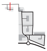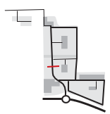 De enclave wordt ontsloten via een doodlopend woonstraatje, via een brug over de waterpartij. De ondergrondse infra is leidend voor de inrichting en eventuele beplanting.