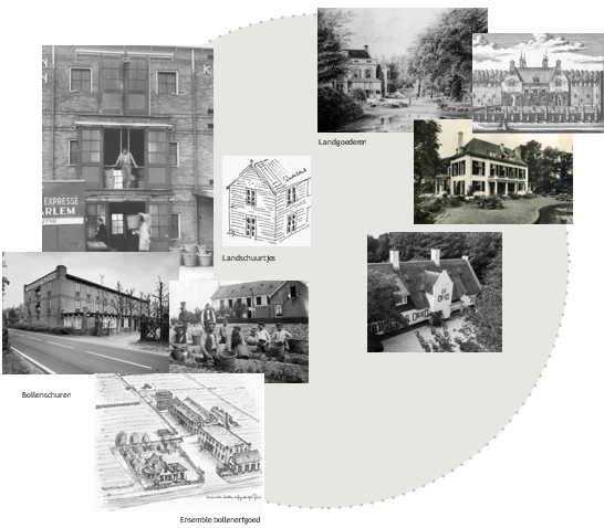 Vanaf de 16e eeuwe werden buitenplaatsen en landgoederen gesticht. Deze bestonden uit hoofdgebouwen met bijgebouwen en tuinen. Het hoofdhuis is het dominante bouwvolume door omvang, architectonische kwaliteit, positionering op de kavel. Ze zijn gericht op de infrastructuur en dikwijls zichtbaarheid vanaf de openbare (vaar)weg.