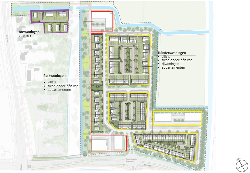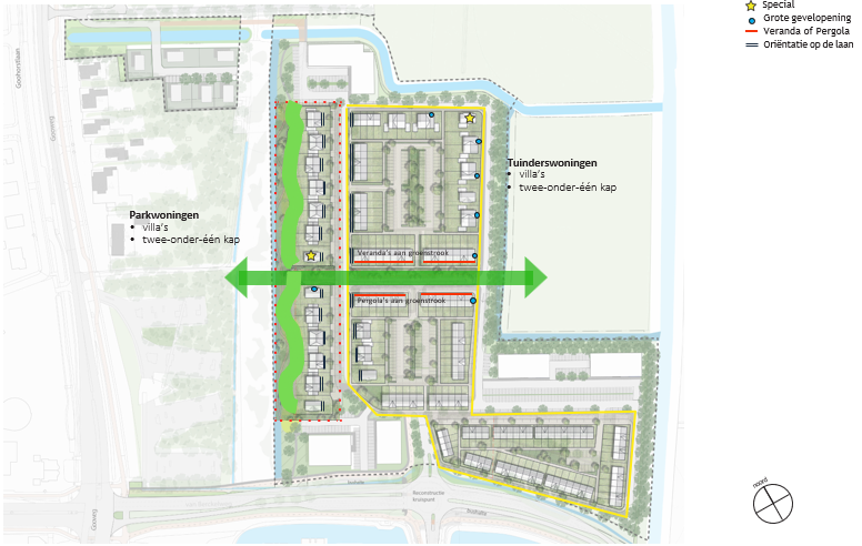 Het uitgangspunt is dat hier eveneens een woongebied ontstaat, omzoomd door veel groen, waardoor het - ondanks het aantal vrije kavels - toch onderdeel gaat uitmaken van de grote groene kavels aan de Gooweg.