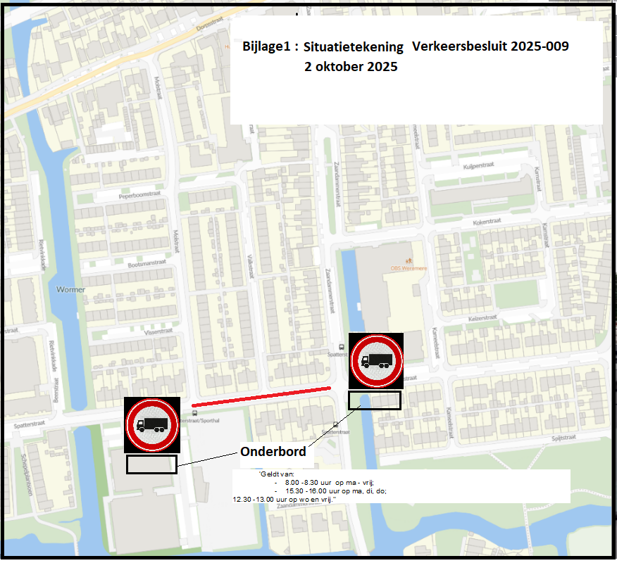 Woningbouwvereniging Wormer Wonen in de Molenbuurt de huurwoningen gaat vervangen door duurzame woningen in de periode zomer 2025 tot zomer 2026; De Spatterstraat onderdeel uitmaakt van de aanvoerroute voor bouwverkeer,