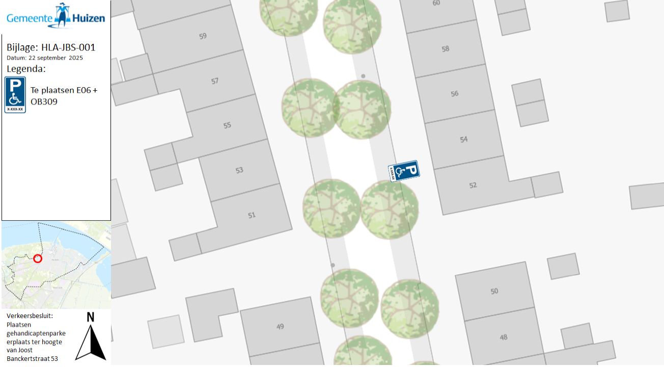 Verkeersbesluit plaatsen gehandicaptenparkeerplaats op kenteken Joost Banckerstraat 53 te Huizen