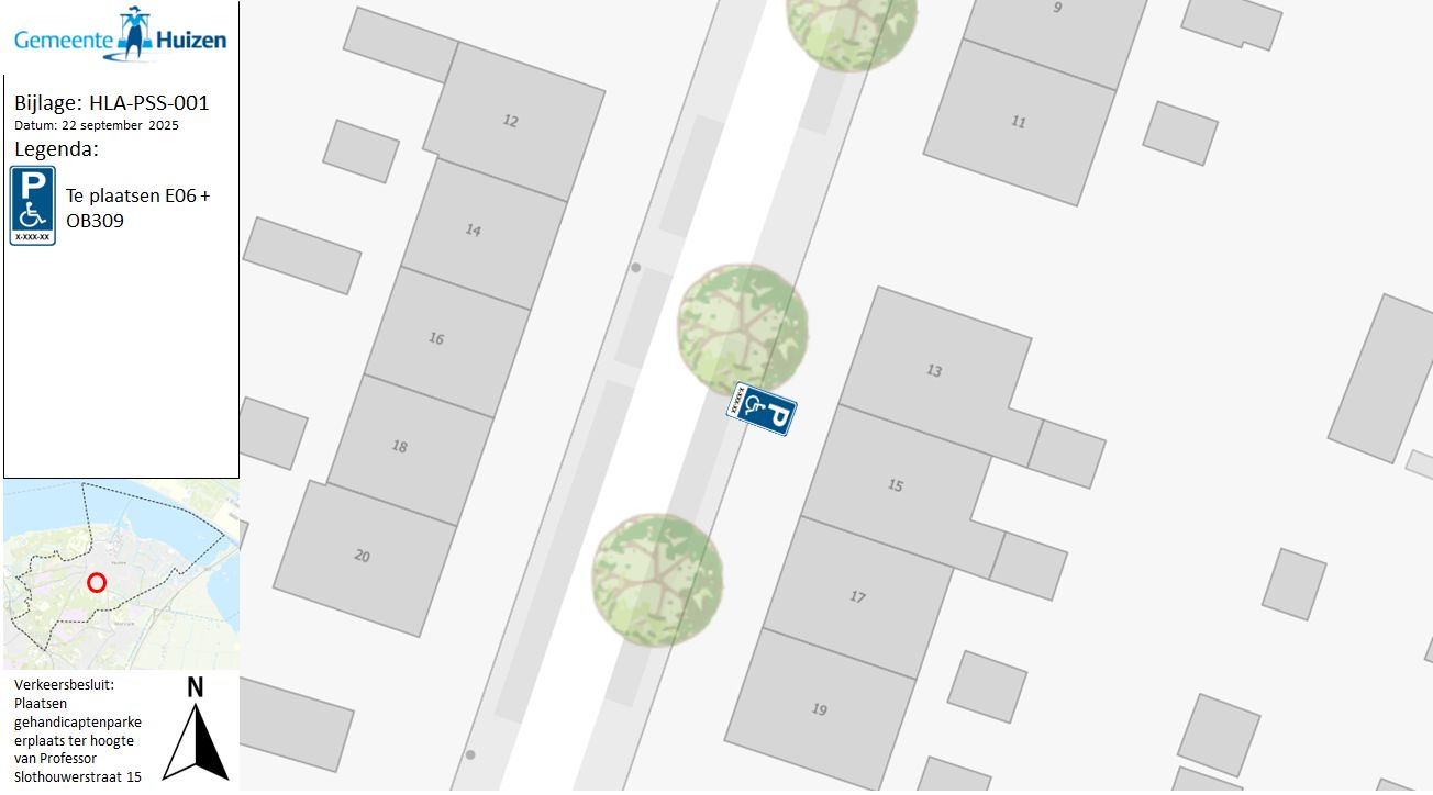 Verkeersbesluit plaatsen gehandicaptenparkeerplaats op kenteken Professor Slothouwerstraat 15 te Huizen