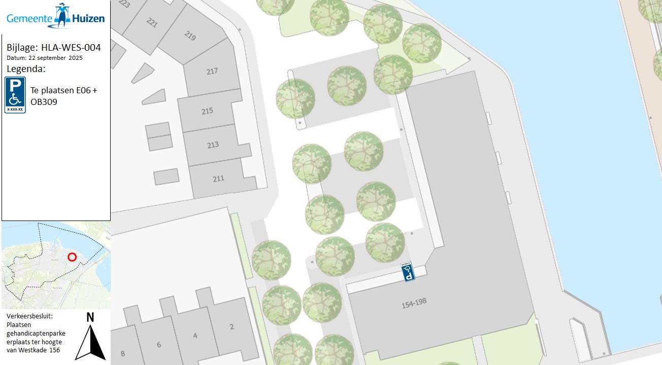 Verkeersbesluit plaatsen gehandicaptenparkeerplaats op kenteken Westkade 156 te Huizen