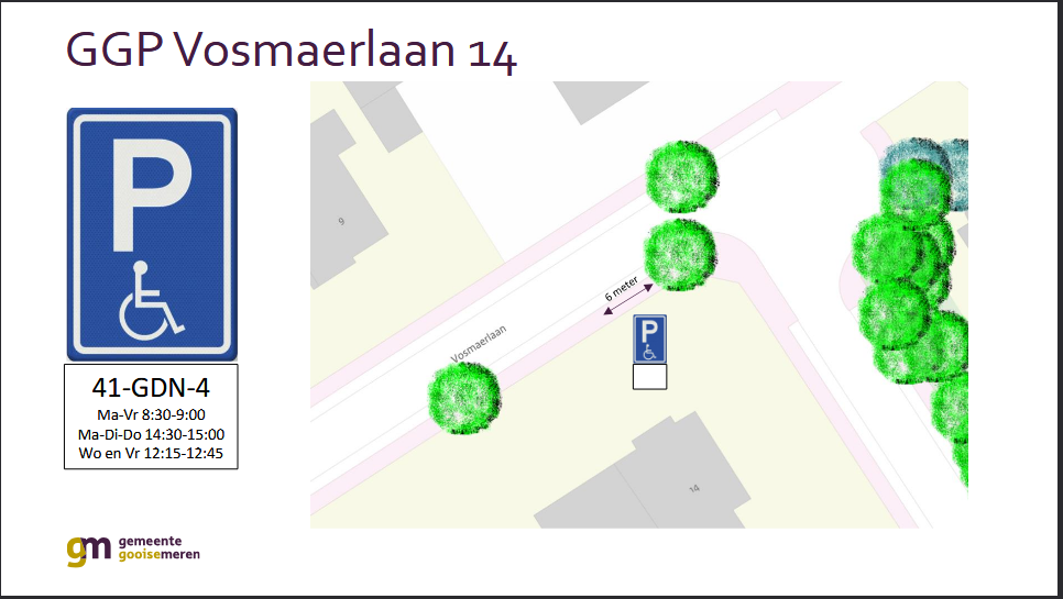 Verkeersbesluit voor het realiseren van een gehandicaptenparkeerplaats (GPP) op kenteken ter hoogte van Vosmaerlaan 14 te Bussum