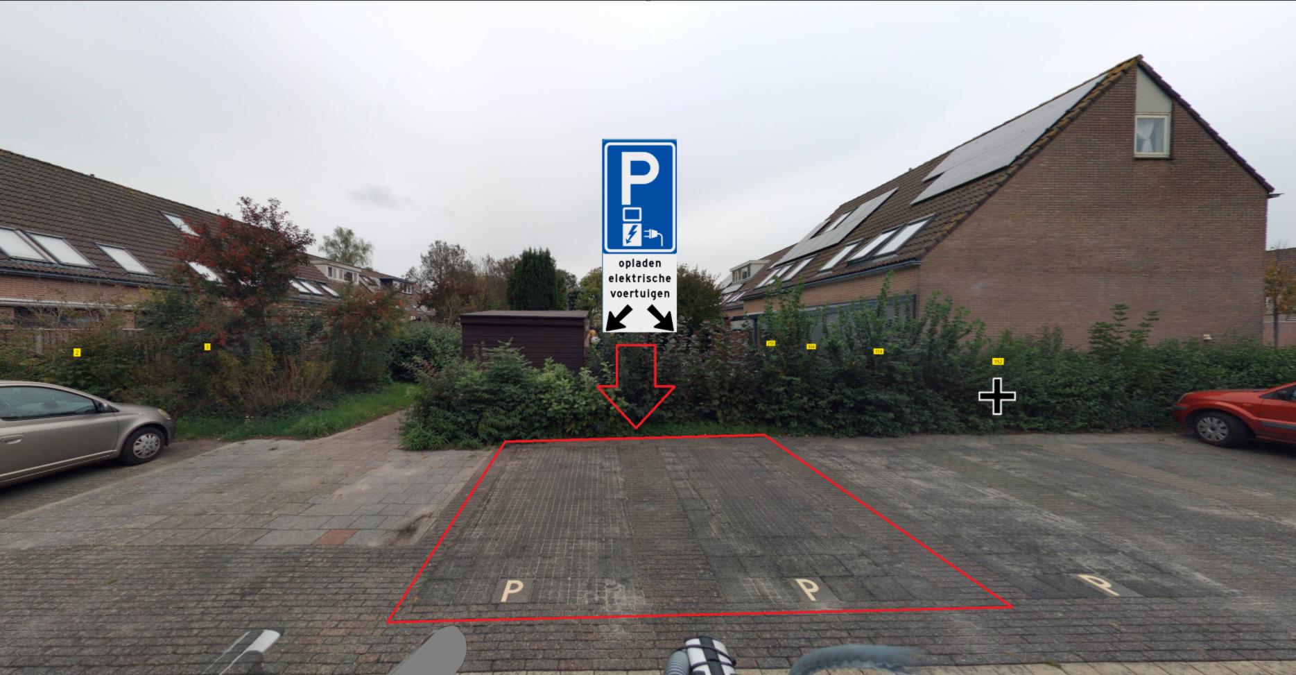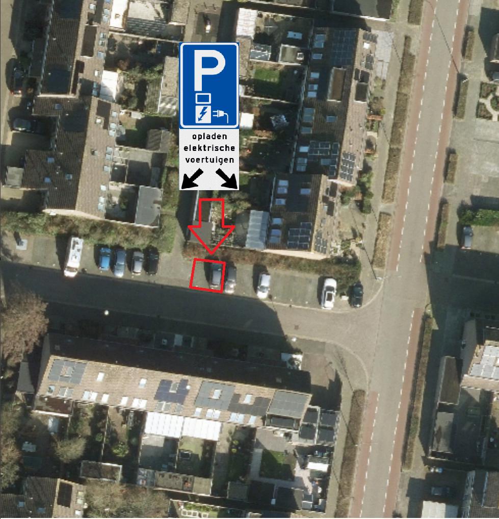 - dat dit gerealiseerd kan worden door middel van het plaatsen van het verkeersbord E8C van bijlage 1 van het RRV 1990 met een onderbord met de tekst ‘alleen opladen elektrische voertuigen’ en een onderbord dat aanduidt dat het verkeersbord van toepassing is op twee parkeervakken;