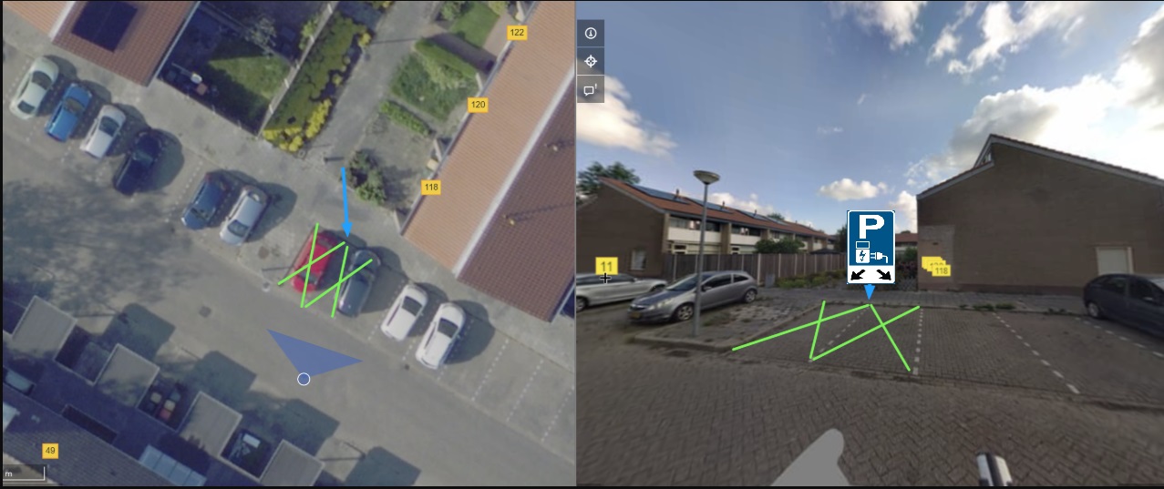 De laadpaal wordt geplaatst in het midden tussen twee parkeerplaatsen. Bij het kiezen van een nieuwe oplaadlocatie dient rekening gehouden te worden met de volgende criteria: