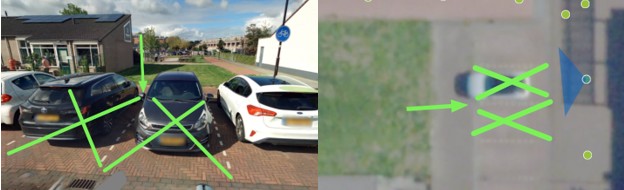 VI. Aan te wijzen twee parkeerplaatsen alleen voor het opladen van elektrische voertuigen door het plaatsen van een bord E8c en OB504 volgens bijlage I van het RVV 1990 t.h.v de Groene Wetering 24, 1391 DP Abcoude, conform onderstaande afbeelding: