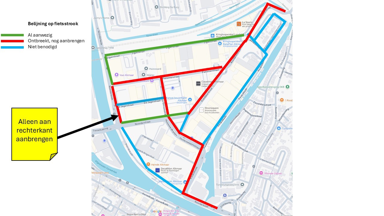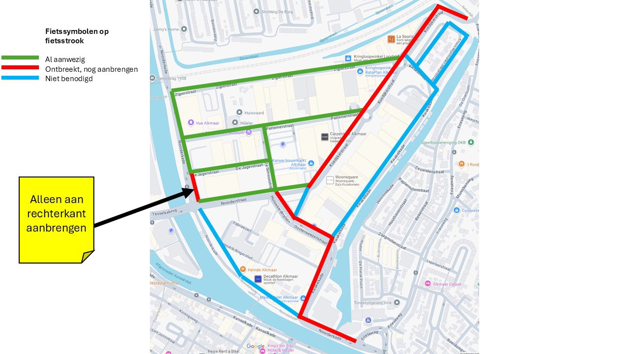de suggestiestroken op de Koedijkerstraat, traject Huiswaarderplein/Oosterweezenstraat/Kwakelkade/Noorderkade en het deel van de Noorderkade gelegen tussen de De Jagerstraat en de Noorderstraat aan te wijzen als fietsstrook door het aanbrengen van fietssymbolen op de fietsstroken zoals bedoeld in artikel 1 van het RVV 1990 en het aanbrengen van lengtemarkering (doorgetrokken streep en bij uitritten een onderbroken streep).