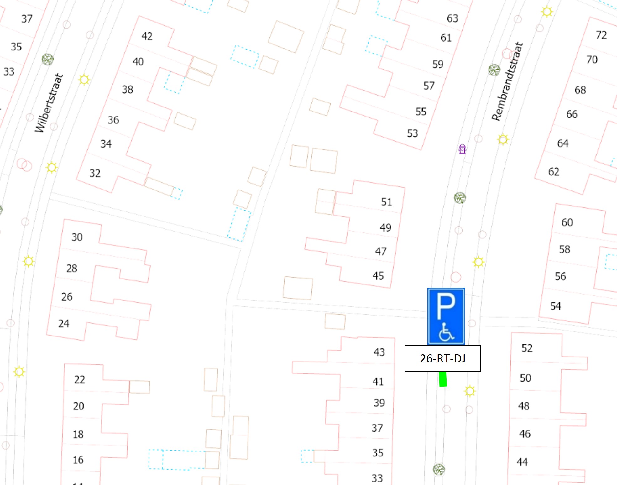 Het aanwijzen en inrichten van een gehandicaptenparkeerplaats op kenteken aan de Rembrandtstraat door het plaatsen van het verkeersbord E6 van het RVV 1990 met onderbord met kenteken 26-RT-DJ, zoals is aangegeven op de overzichtstekening in dit besluit.