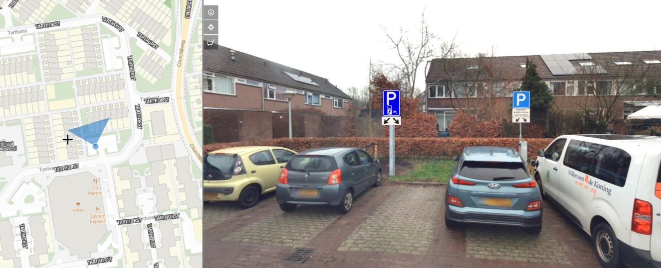 In de afbeelding hierboven staat links met een blauwe driehoek aangegeven waar de laadpaal gaat komen. Rechts kunt u zien welke twee extra parkeervakken gereserveerd worden.