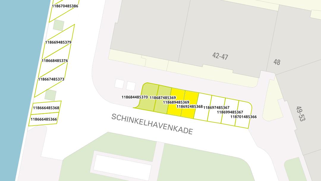 Twee parkeerplaatsen ter hoogte van perceel Schinkelhavenkade 42 (parkeervaknummers 118689485369 en 118692485368) aan te wijzen voor het opladen van elektrische voertuigen door het plaatsen van een bord conform model E8c van Bijlage I van het RVV 1990, gecombineerd met onderbord OB504 met daarop afgebeeld twee pijlen op een hoek van 45° (RVV 1990).