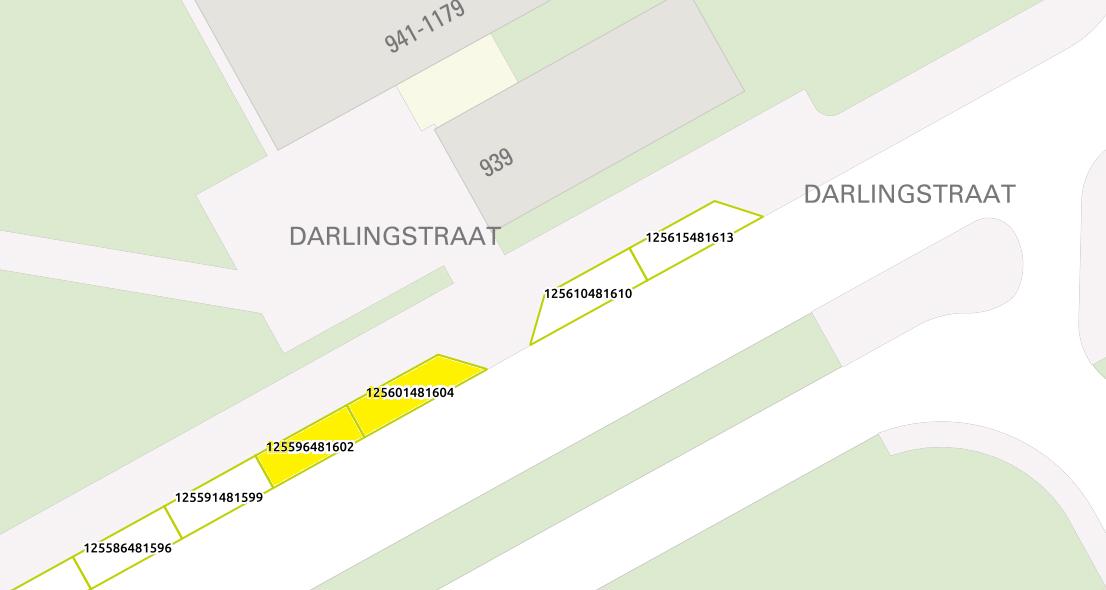 Twee parkeerplaatsen ter hoogte van perceel Darlingstraat 941 (parkeervaknummers 125596481602 en 125601481604) aan te wijzen voor het opladen van elektrische voertuigen door het plaatsen van een bord conform model E8c van Bijlage I van het RVV 1990, gecombineerd met onderbord OB504 met daarop afgebeeld twee pijlen op een hoek van 45° (RVV 1990).