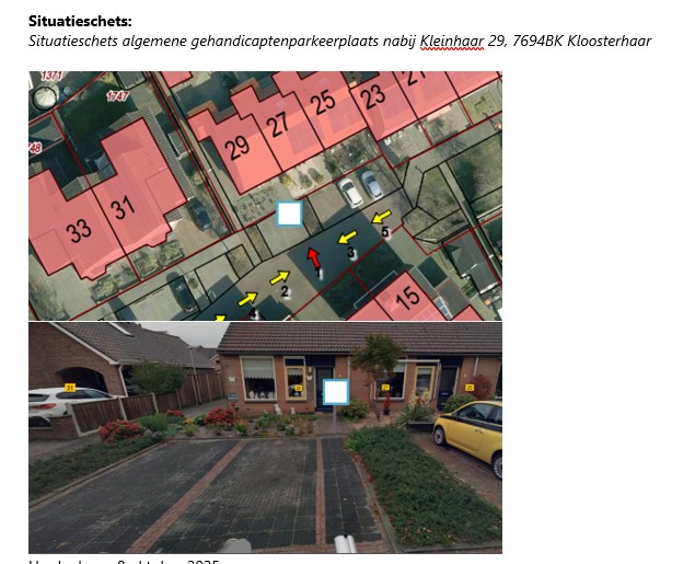 -van een inwoner een aanvraag is ontvangen voor aanwijzing van een algemene gehandicaptenparkeerplaats nabij het Kleinhaar 29, Kloosterhaar;