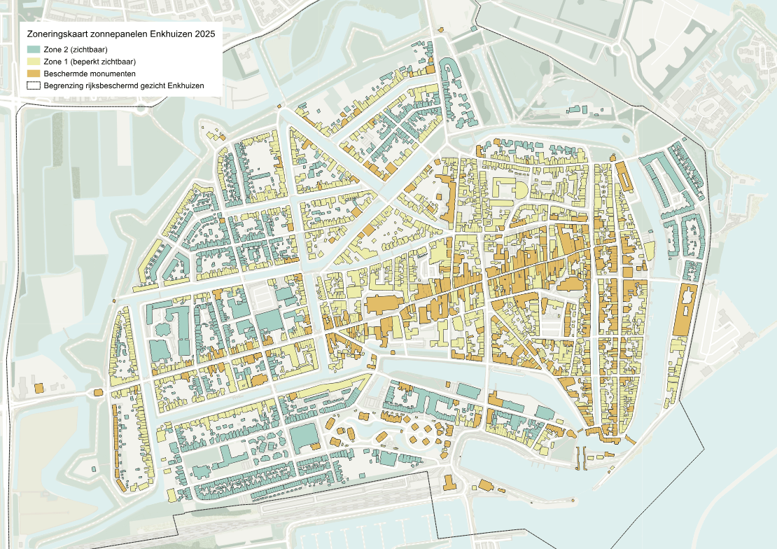De binnenstad van Enkhuizen is van bijzondere historische waarde. Het is een van rijkswege beschermd stadsgezicht en een van de grootste monumentengemeenten van Nederland in verhouding tot het aantal inwoners. Voor bewoners en bezoekers is de historische omgeving een belangrijke reden dat ze de stad aantrekkelijk vinden. Uitgangspunt van de criteria is om meer ruimte te bieden aan het plaatsen van zonnepanelen. Behoud van de karakteristiek van het stadsgezicht is hieraan ondergeschikt. Dit betekent dat de gemeente accepteert dat er enige schade ontstaat aan het historisch en ruimtelijk karakter van het beschermd stadsgezicht bij het plaatsen van zonnepanelen.