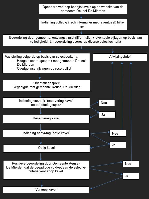 Als de gemeente besluit om de gegadigde niet te selecteren als koper, omdat definitief is gebleken dat de gegadigde niet voldoet aan de selectiecriteria, dan ontvangt de gegadigde een afwijzingsbrief. De bedrijfskavel wordt dan niet aan de gegadigde verkocht. De bedrijfskavel komt dan weer terug in de verkoop waarbij de reservelijst wordt gevolgd.