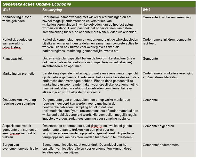 4.1 Generieke acties Economische Zaken – Gemeentebreed