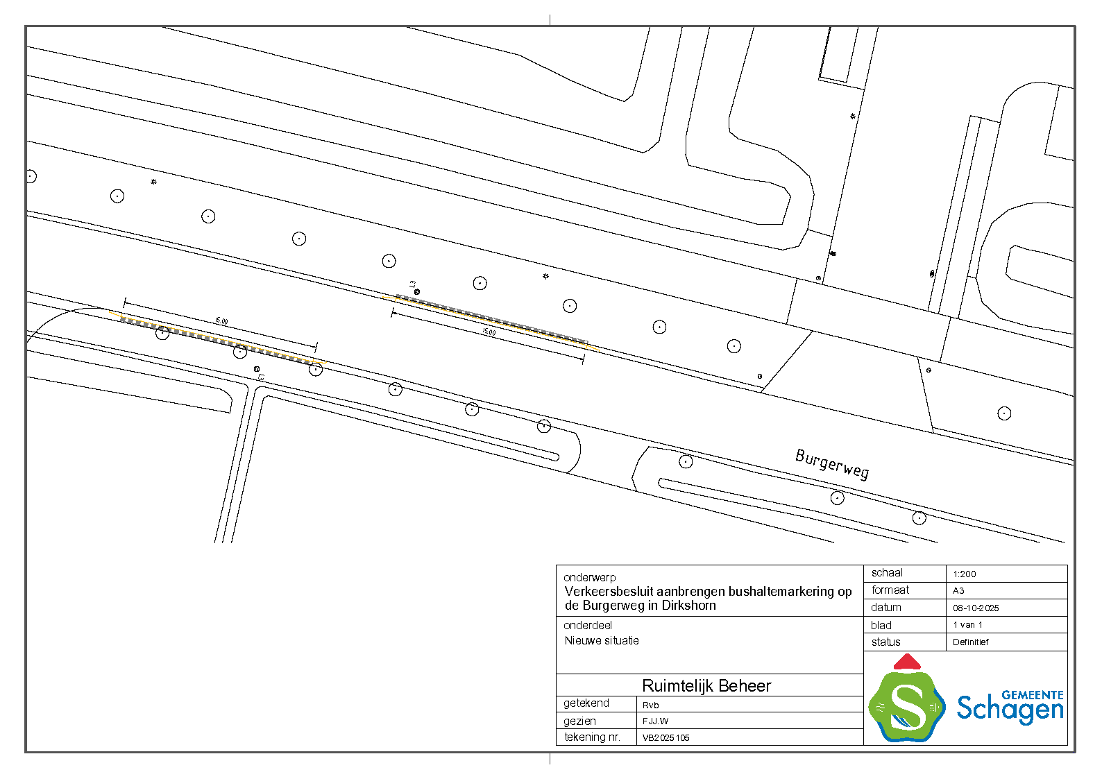 De aanleg van de blokmarkering op de bushaltes Beethovenlaan Schagen, Sportlaan Warmenhuizen en Burgerweg Dirkshorn wordt uitdrukking gegeven door;