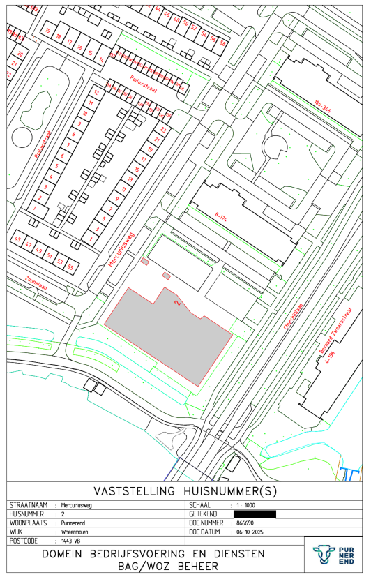 Kennisgeving huisnummerbesluit Mercuriusweg 2 te Purmerend