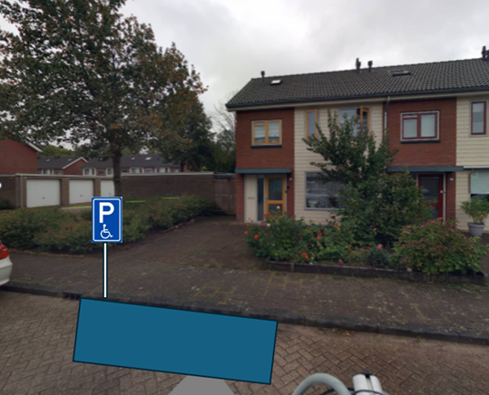 Wij zijn daarom voornemens om op de rijbaan, vóór de woning van aanvrager een vak aan te geven waarbij we het bord ‘gehandicaptenparkeerplaats’ plaatsen.