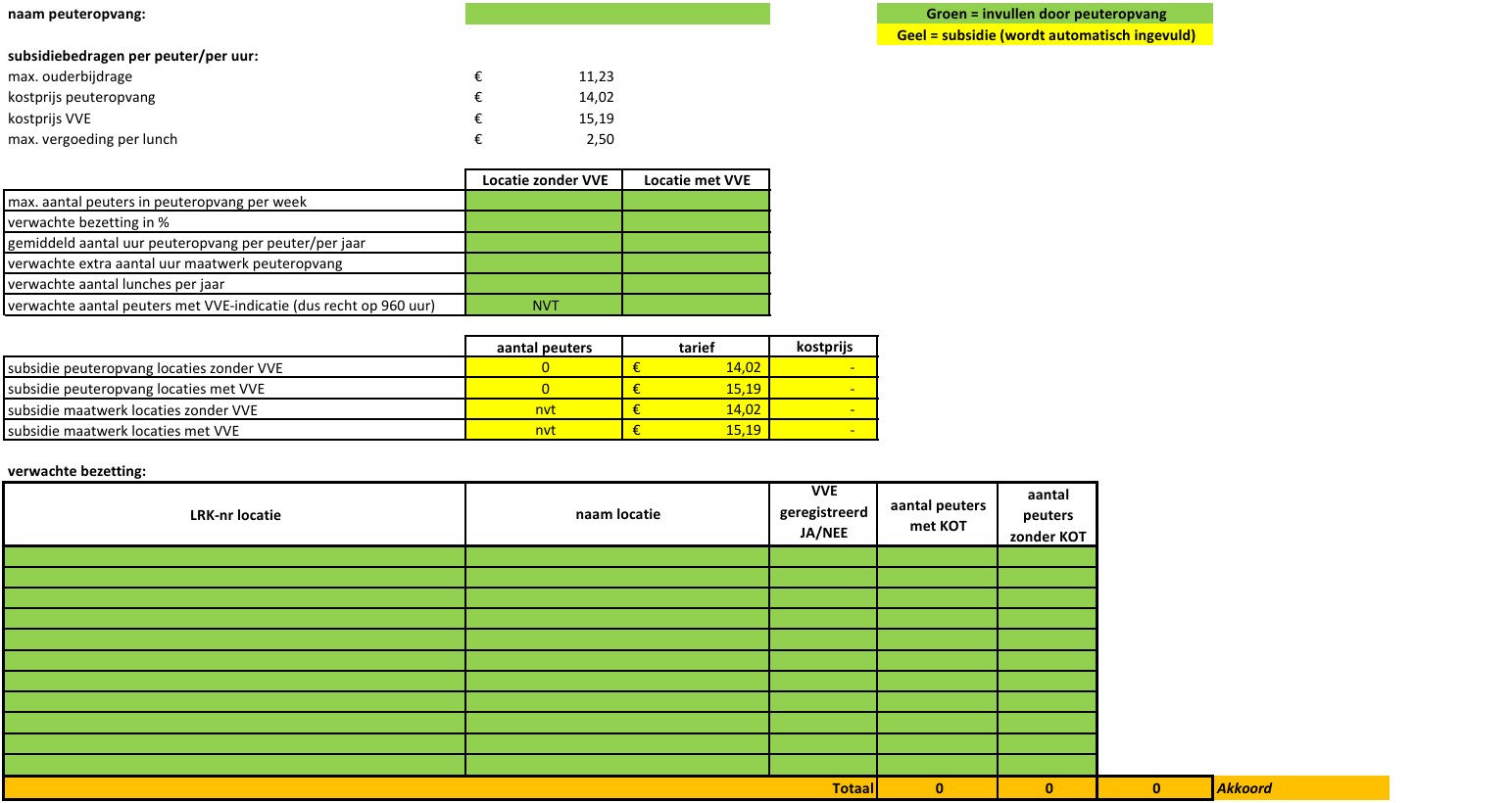 Een peuter met een VVE-indicatie mag maximaal de periode en het aantal uren dat op grond van wet- en regelgeving VVE, aan de peuter worden aangeboden voor de kostprijs van € 15,19 per uur;