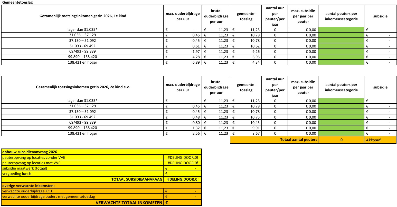 Het subsidieplafond voor peuteropvang voor 2026 bedraagt maximaal € 999.104,-.