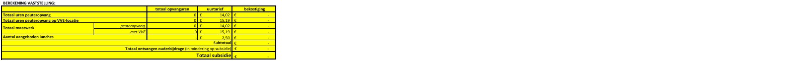 De kostprijs per uur per peuter voor peuteropvang met maatwerk bedraagt € 14,02 en € 15,19 als het uren op een VVE-geregistreerde locatie betreft, zoals blijkt in de maatwerk-indicatie;
