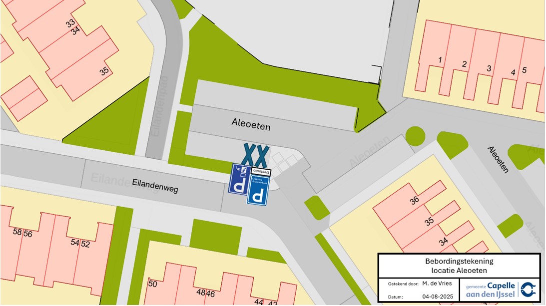 Bebordingstekening Aleoeten ter hoogte van huisnummer 36