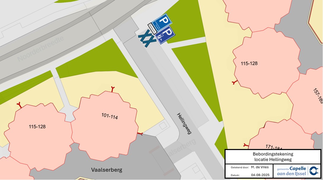 Bebordingstekening Hellingweg ter hoogte van Vaalserberg 101