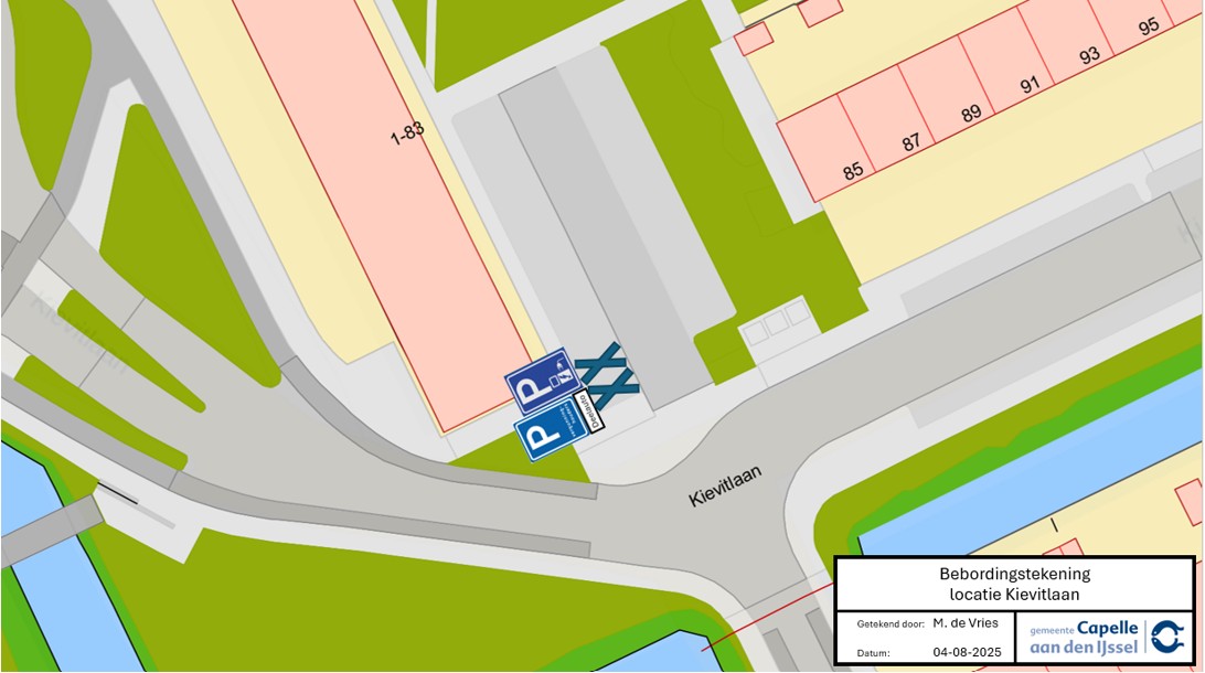 Bebordingstekening Kievitlaan ter hoogte van huisnummer 1