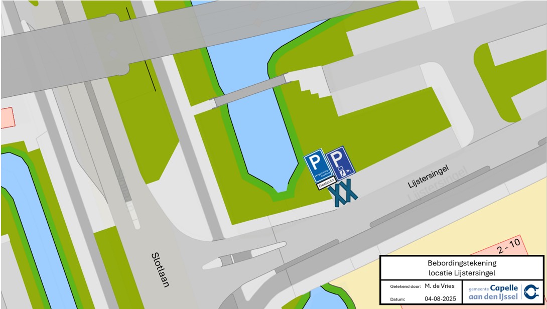 Bebordingstekening Lijstersingel ter hoogte huisnummer 2