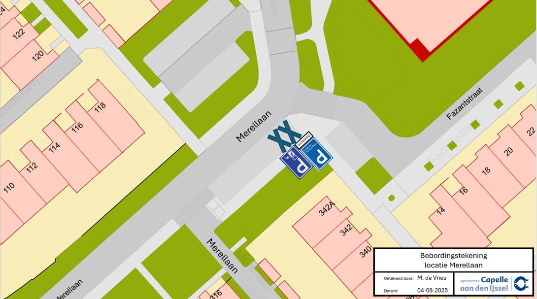 Bebordingstekening Merellaan ter hoogte van huisnummer 342a