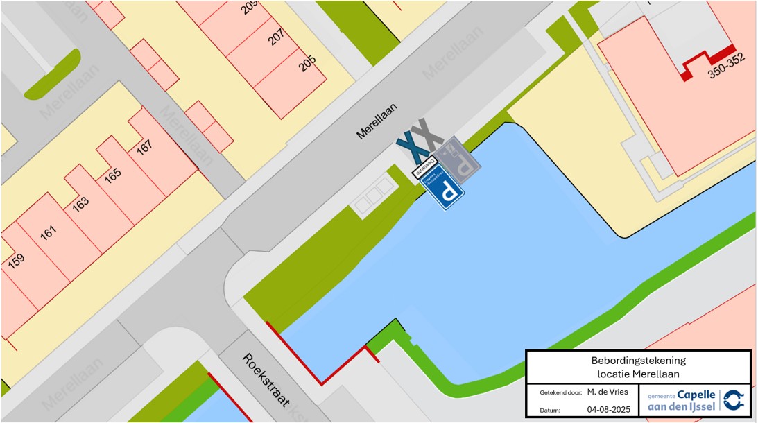 Bebordingstekening Merellaan ter hoogte van huisnummer 205