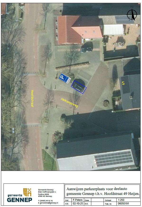 AANWIJZEN PARKEERPLAATS VOOR DEELAUTO GEMEENTE GENNEP THV HOOFDSTRAAT 49 HEIJEN