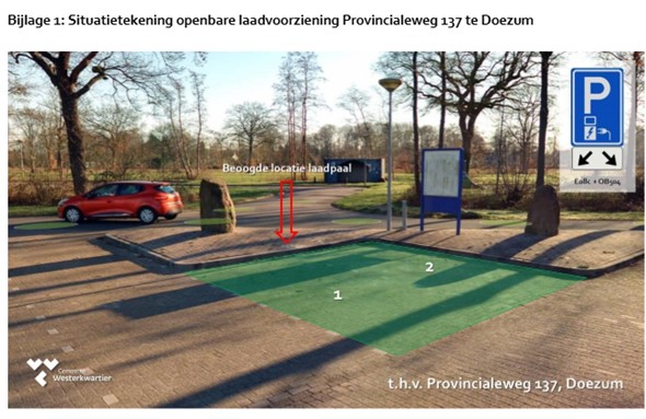 dat het gaat om één laadpaal (met twee oplaadaansluitingen) op het openbare parkeerterrein t.h.v. Provincialeweg 137 te Doezum;