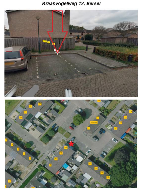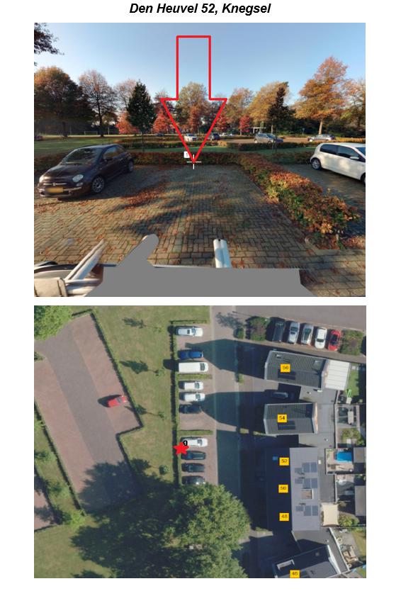• nabij Aelenstraat 20, Schapendries 2 en Kraanvogelweg 12 te Eersel, Koemeerskuil 11 te Wintelre, en Den Heuvel 52 te Knegsel twee parkeerplaatsen aan te wijzen als parkeerplaats voor alleen het opladen van elektrische voertuigen zoals aangeduid op onderstaande tekening;