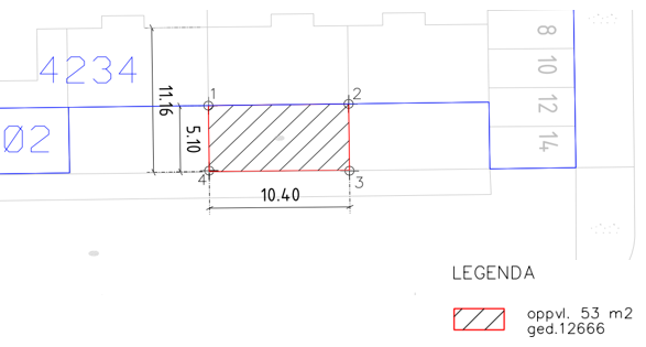 Het in erfpacht uit te geven perceel staat op onderstaande kaart aangegeven met streeparcering.