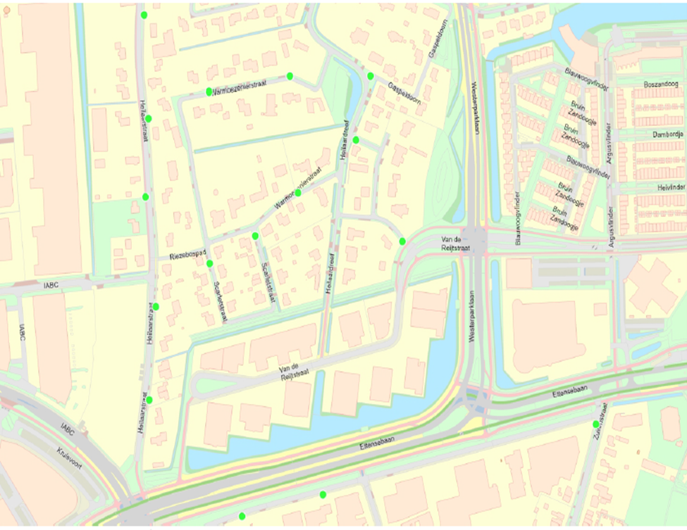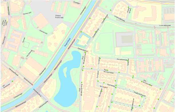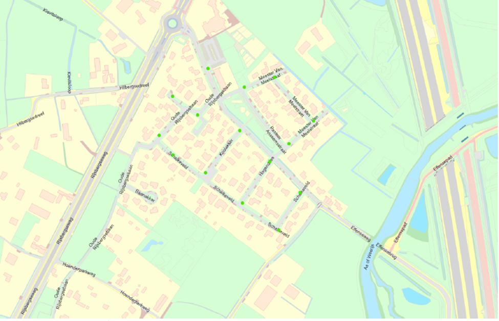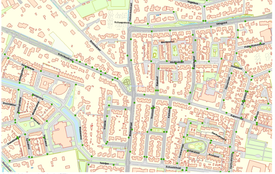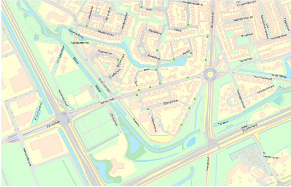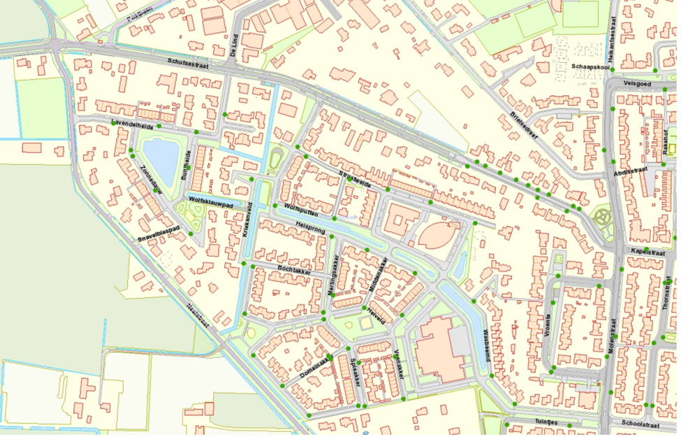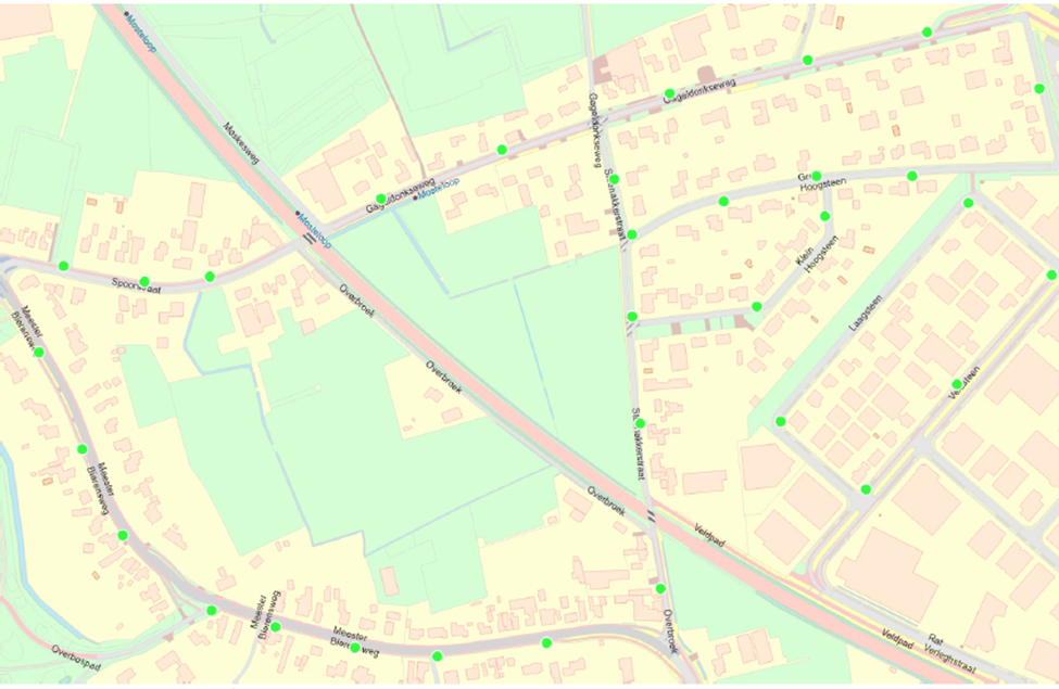 Verzamellocatie met (groene) stip aangegeven op tekening.