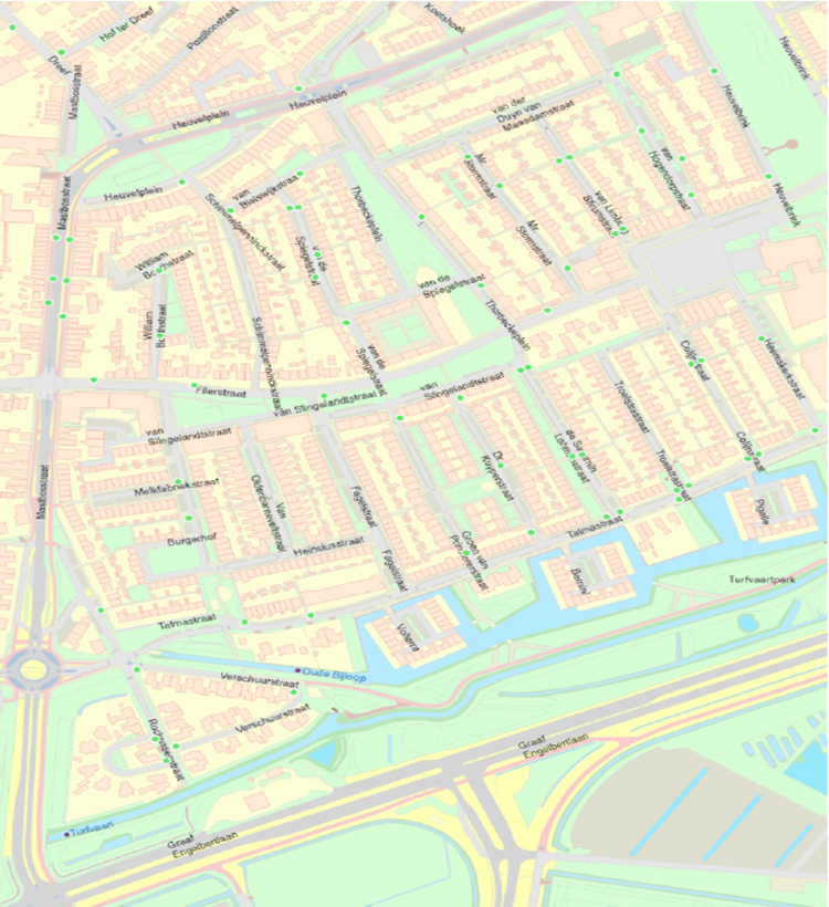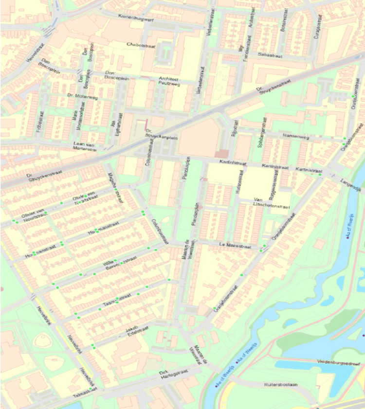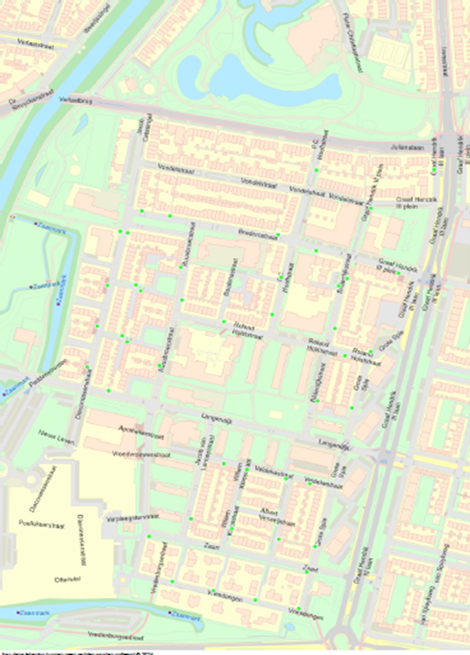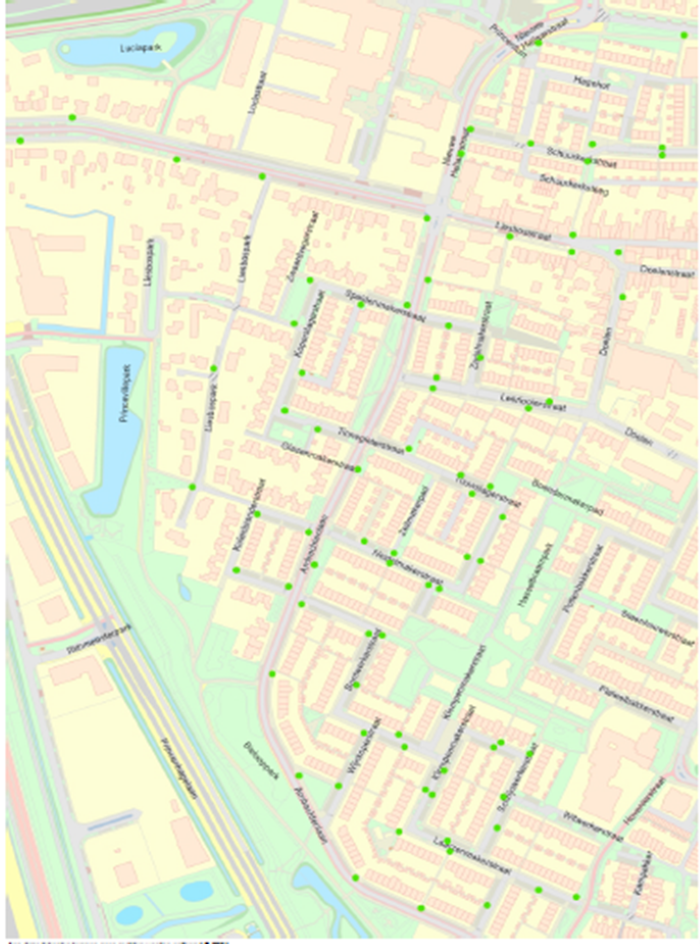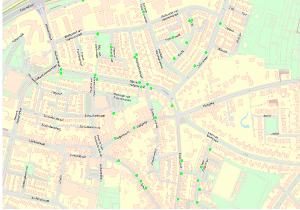 Verzamellocatie met (groene) stip aangegeven op tekening.