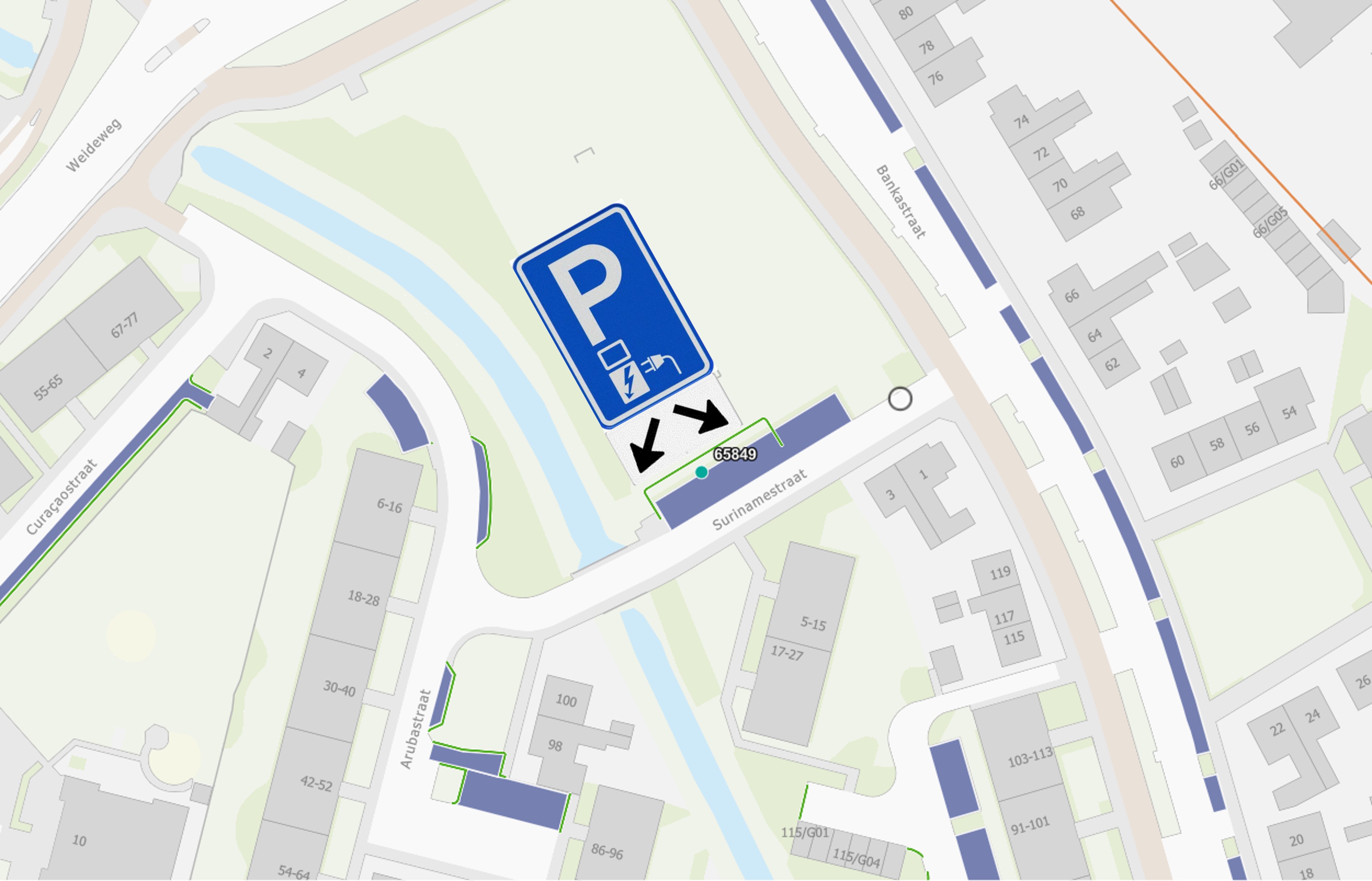 Verkeersbesluit twee parkeerplaatsen elektrische voertuigen Surinamestraat