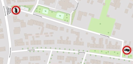 dat op de Korenbloemweg momenteel een geslotenverklaring voor vrachtauto’s verkeersbord C7 van toepassing is waarvan bezorgend vrachtverkeer is uitgezonderd;