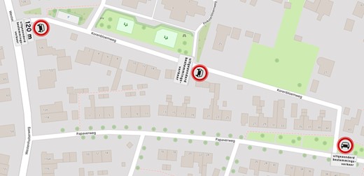 de hiervoor genoemde maatregel toe te passen op het gedeelte van de Korenbloemweg tussen Papaverweg en Pinksterbloemweg;