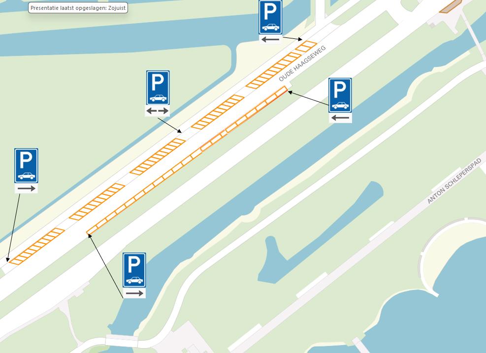 Door het plaatsen van verkeersborden conform model E8 van Bijlage I van het RVV 1990 inclusief het aanbrengen van de onderborden OB501-L, OB501-R en OB502 in te stellen: Diverse parkeergelegenheden alleen bestemd voor de voertuigcategorie die op het bord is aangegeven op het deel van de Oude Haagseweg tussen de Anderlechtlaan en het gebouw van de luchtverkeersleiding, direct ten noorden van het Anton Schleperspad, aan weerszijden van de rijbaan.