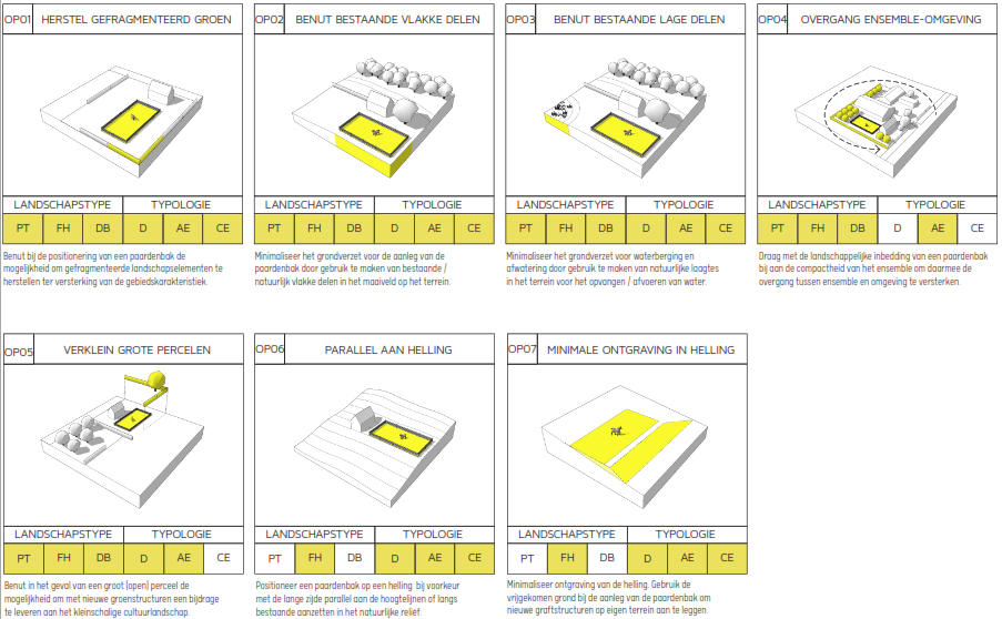 Hoewel de locatiekeuze op basis van de afwegingskaart dus een eerste stap vormt om de, vanuit een landschappelijk oogpunt, geschikte locaties snel en effectief te kunnen duiden, zijn de lokale ruimtelijke kenmerken richtinggevend voor de mogelijkheden ter plaatse en leidend voor de positionering van een paardenbak.