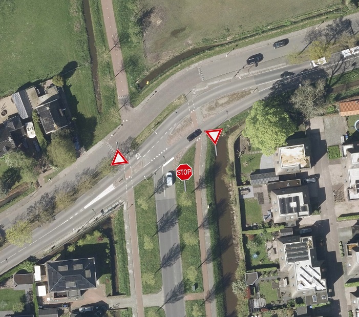 Wij besluiten op grond van bovenvermelde overwegingen tot het plaatsen van de volgende borden uit bijlage 1 van het RVV 1990 volgens de onderstaande situatieschets: