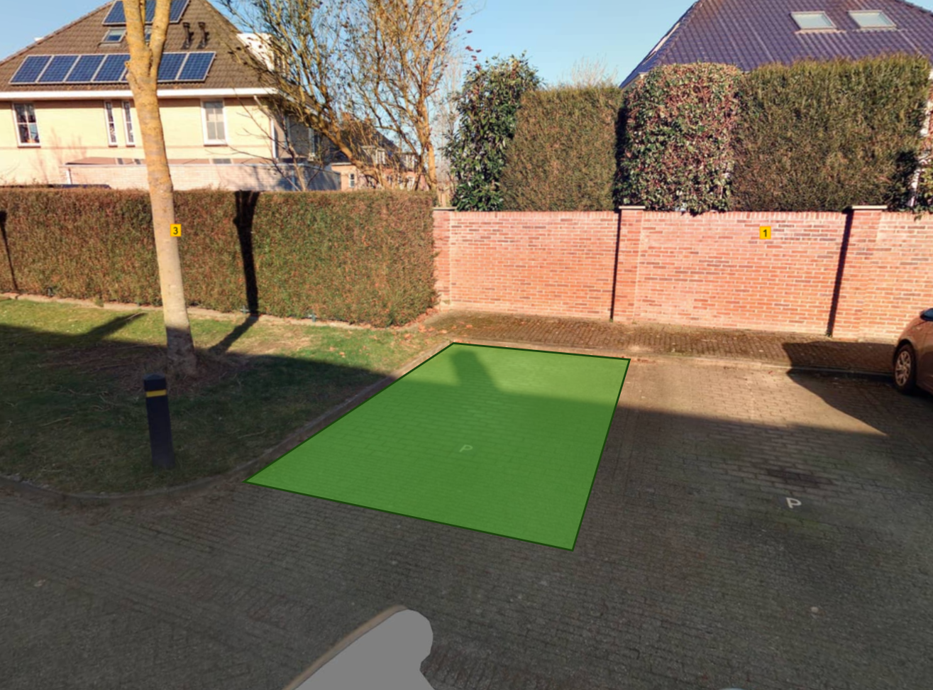 b. aan te geven door het plaatsen van verkeersbord E6, conform bijlage 1 van het RVV 1990 met het kenteken van de aanvrager op het onderbord;