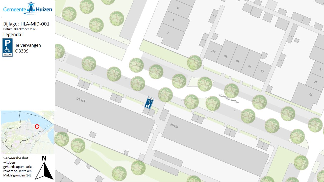 Verkeersbesluit wijzigen gehandicaptenparkeerplaats op kenteken Middelgronden 143 te Huizen