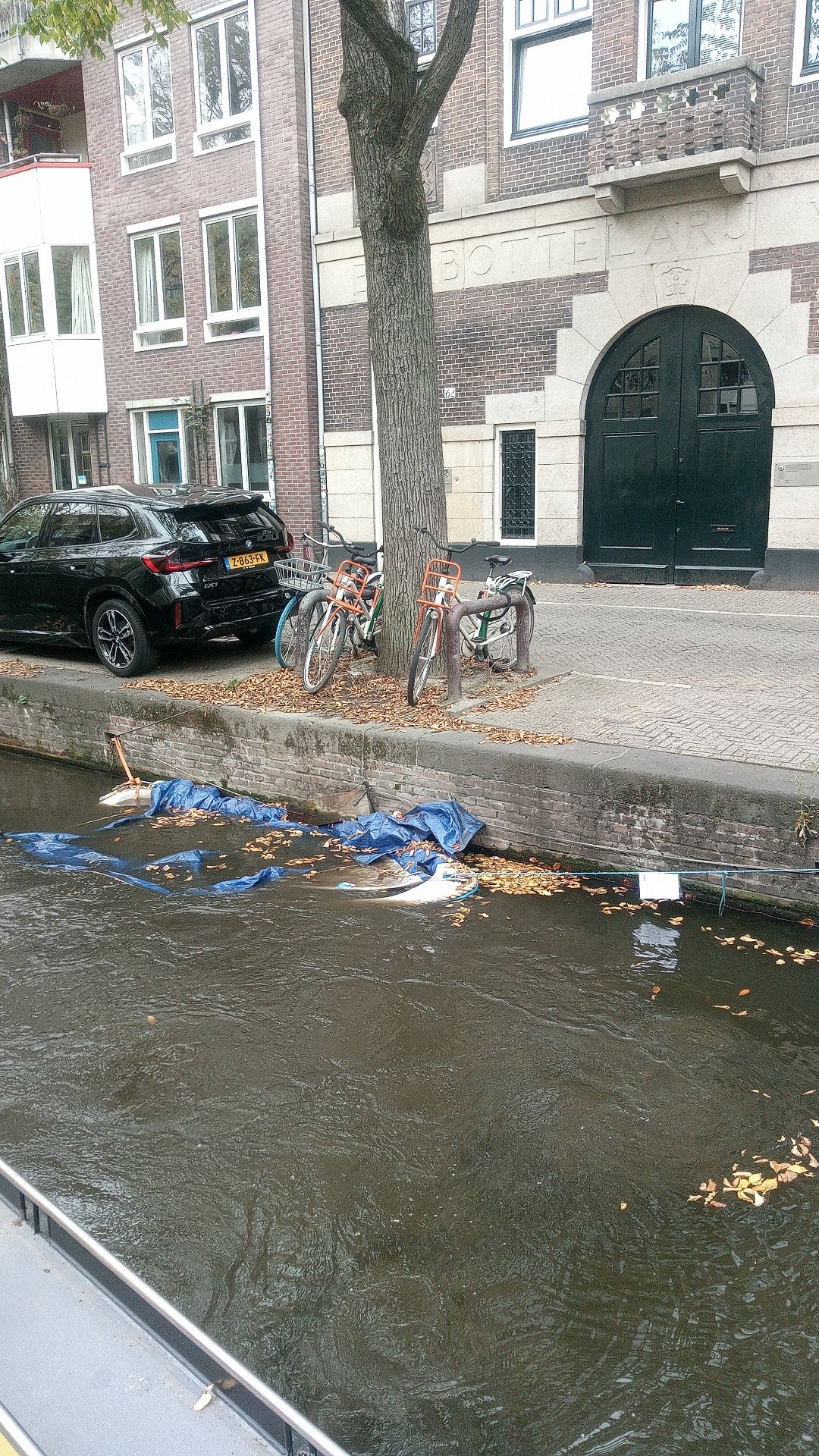 Mededeling opruimen gezonken vaartuig volgens de Wrakkenwet aan Looiersgracht 60 te Amsterdam