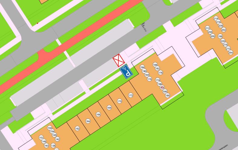De afdeling Stadsruimte van de gemeente Almere heeft een verzoek ontvangen voor het verbreden van een gehandicaptenparkeerplaats op kenteken. De verbreding is niet mogelijk aan de linkerzijde van het parkeervak aangezien het aanwezige trottoir met invalidenoprit niet versmald kan worden.
