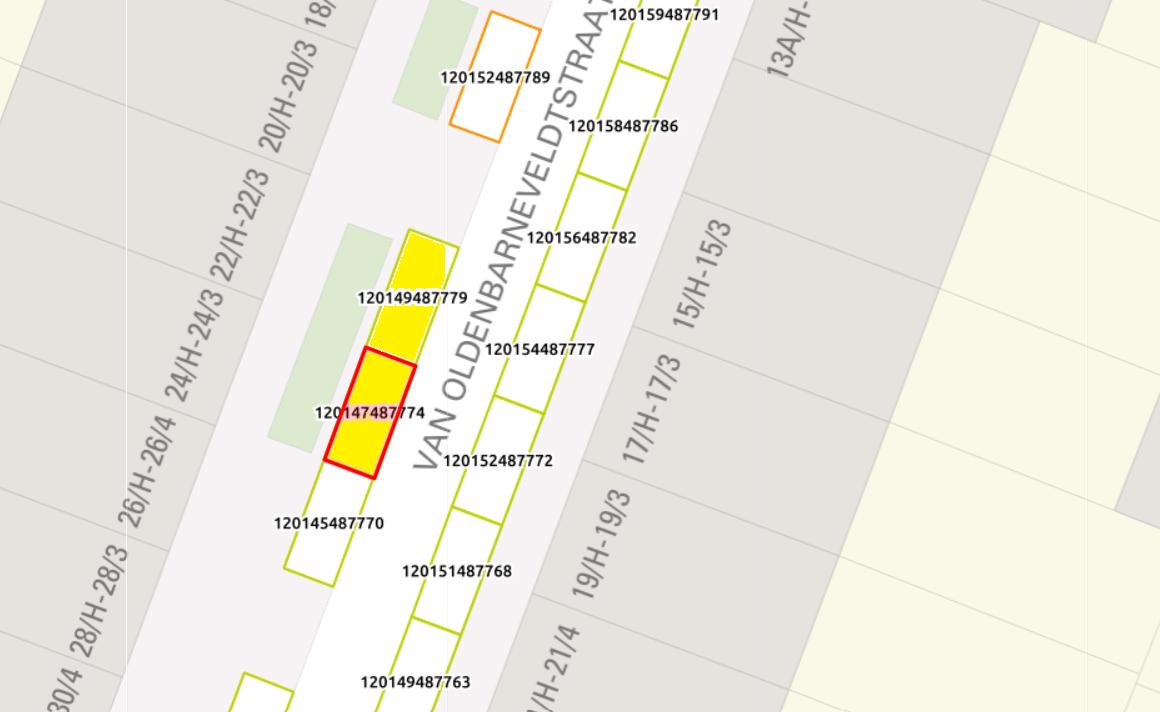 Twee parkeerplaatsen ter hoogte van perceel Van Oldenbarneveldtstraat 22 (parkeervaknummers 120149487779 en 120147487774) aan te wijzen voor het opladen van elektrische voertuigen door het plaatsen van een bord conform model E8c van Bijlage I van het RVV 1990, gecombineerd met onderbord OB504 met daarop afgebeeld twee pijlen op een hoek van 45° (RVV 1990).