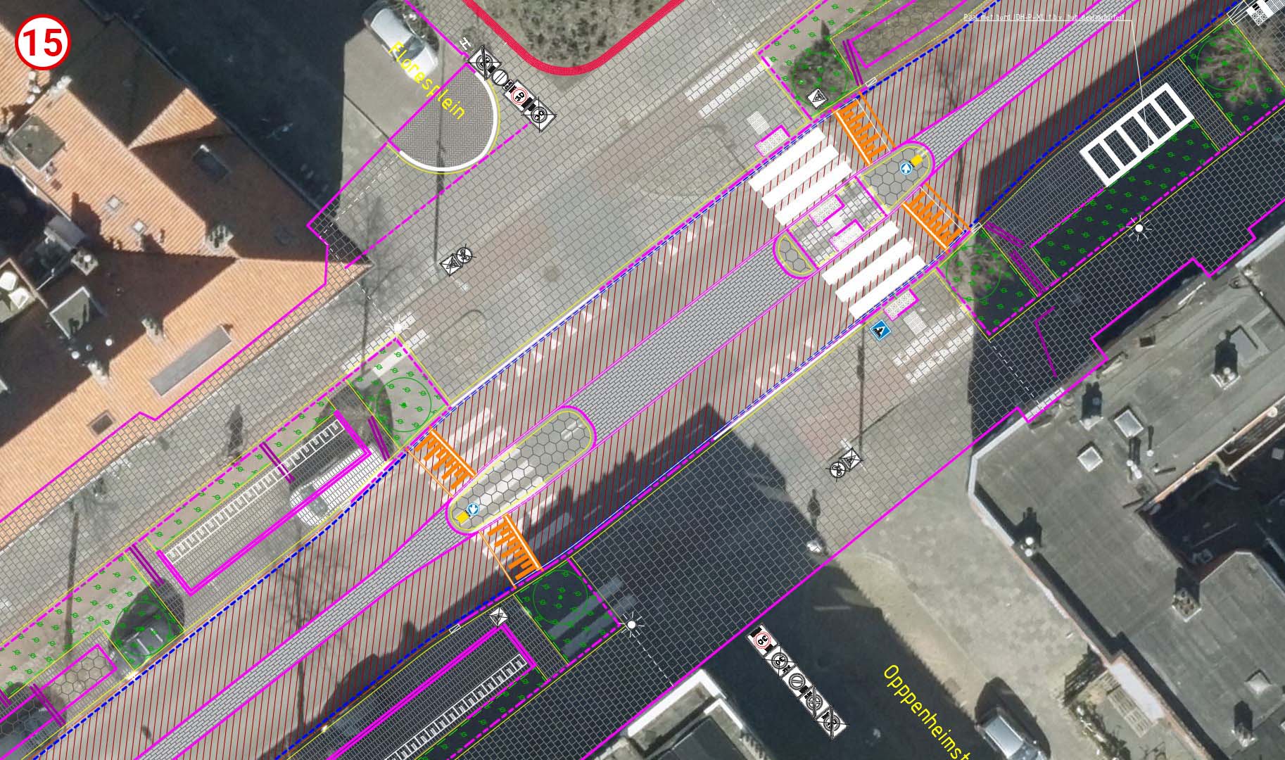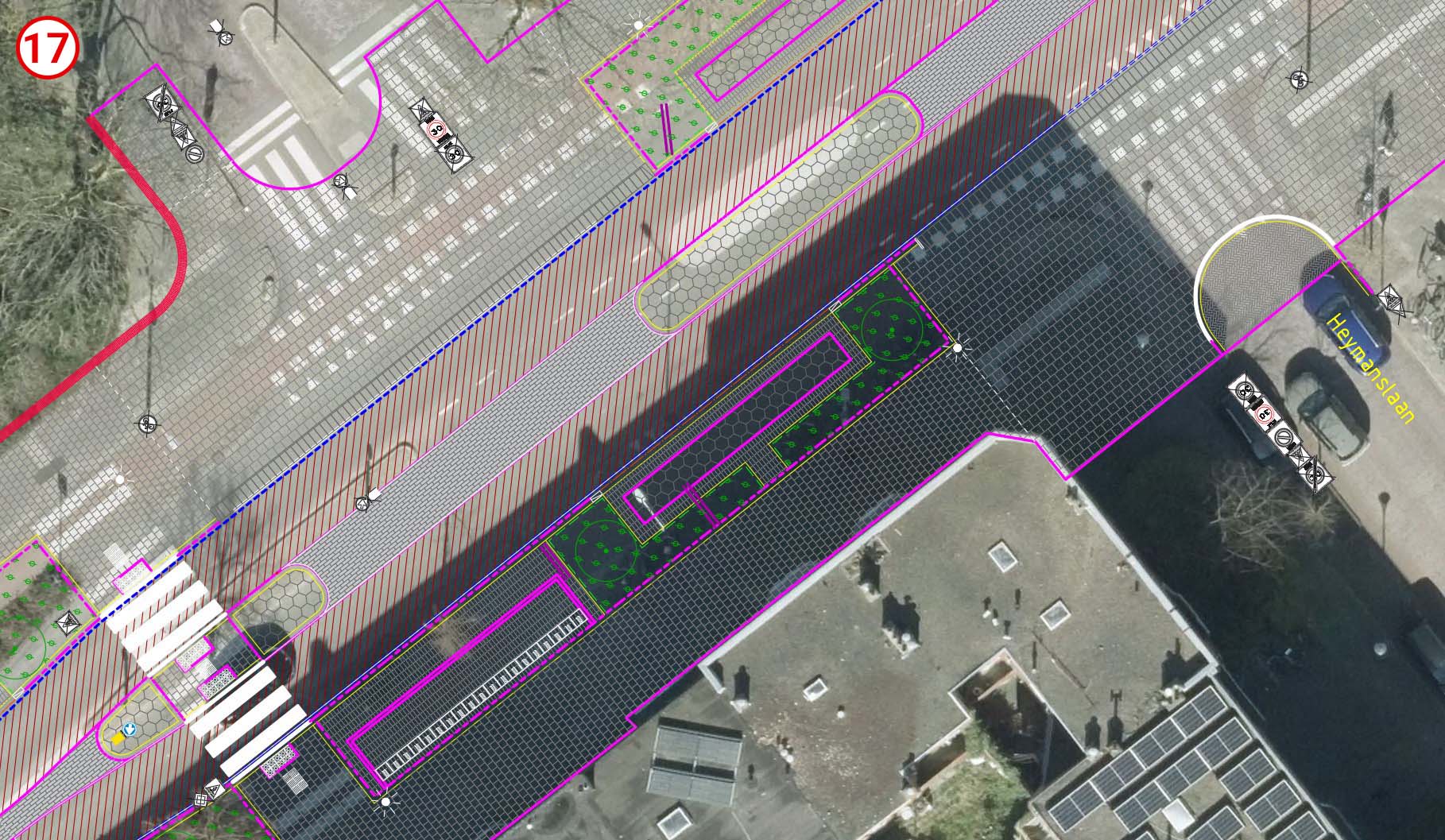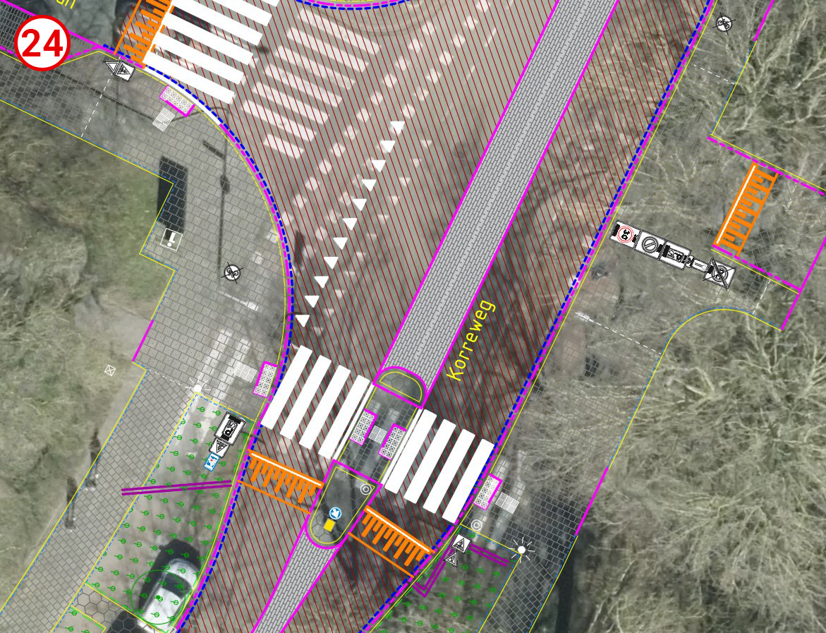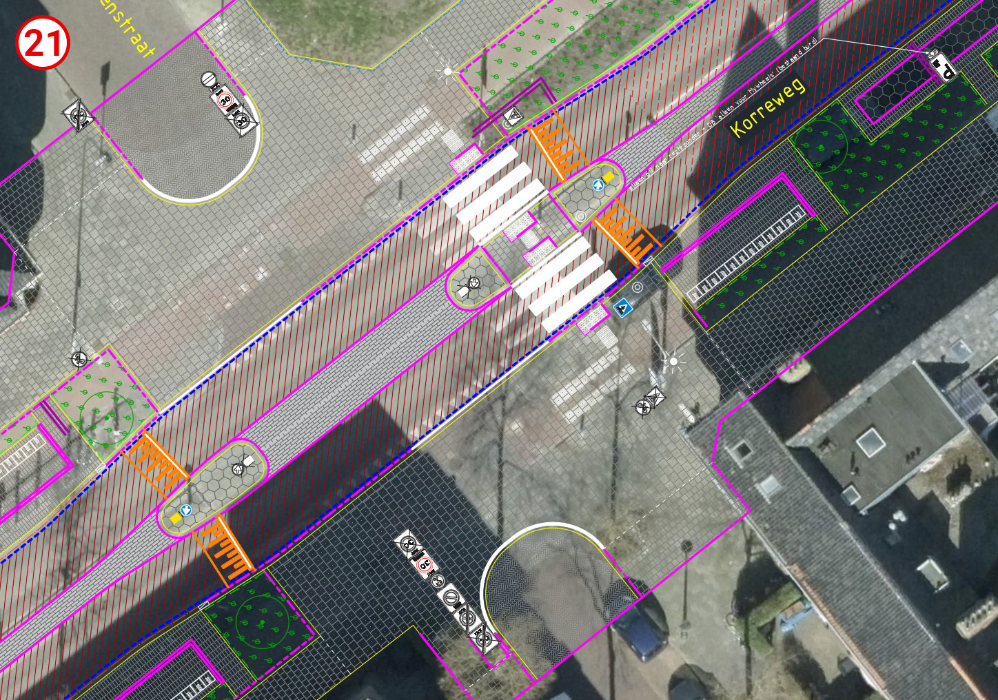 Op het (bajonet)kruispunt Heymanslaan - Korreweg - Floresplein wordt de voorrang in de nieuwe situatie niet meer geregeld met zebrapaden en haaientanden, maar met uitritconstructies. Hierbij moet de voetganger nog steeds worden voorgelaten door het overige verkeer en blijft de Korreweg ook in de voorrang liggen.